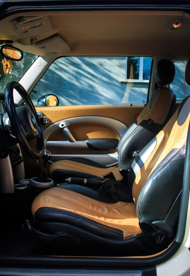 - Steering wheel and seat covers in tactile materials, offering a pleasing grip and touch.